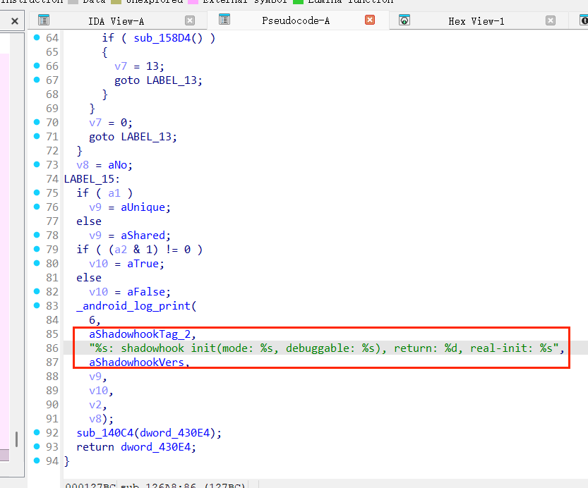 这里可以看到一个字符串,那么猜测这个函数就是shadowhook的初始化操作,接着分析sub_12300函数