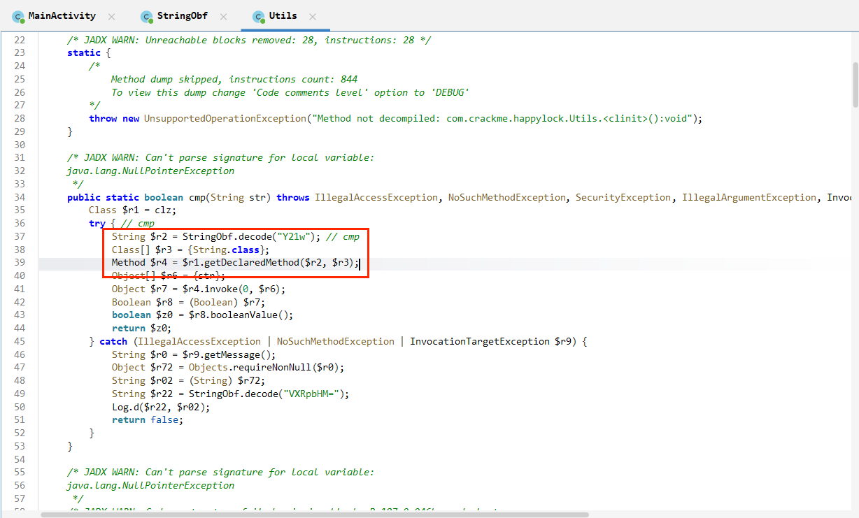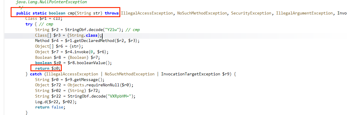 这里是用反射动态调用某个类里的 cmp(String) 方法
