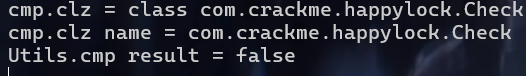 | function hook() { let a = Java.use("com.crackme.happylock.Utils"); a.cmp.implementation = function(s){ let result = this.cmp(s); try{ console.log("cmp.clz = " + a.clz.value); console.log("cmp.clz name = " + a.clz.value.getName()); }catch(e){ console.log("cmp.clz error = " + e); } console.log(`Utils.cmp result = ${result}`); return result; } }